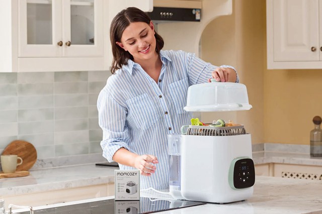 It only takes five simple steps to hit the ground running on bottle cleaning, so you won’t waste precious time poring over the manual. Just plug it in, hook the drain pipe up so it empties into the sink, fill it with rinsed bottles and parts, toss in a tablet, add your water, and choose your preferred sterilize and drying settings. That’s it! One of the standout features is how quietly it operates, especially compared to older Momcozy models.