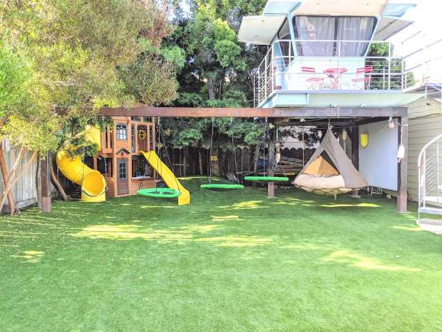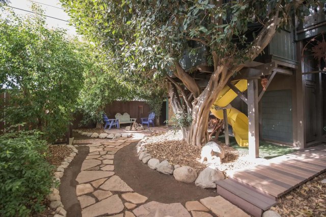 Although not exactly a treehouse, this authentic lifeguard tower has been converted into a treehouse-style room that's sure to delight kids. Beneath the tower is a play fort, swings, relaxation pod, and slides. But that's not all: There's also a trampoline that can be used with parents' supervision. While kids may not want to leave, you are just 10 minutes from the ocean and downtown Pismo Beach.