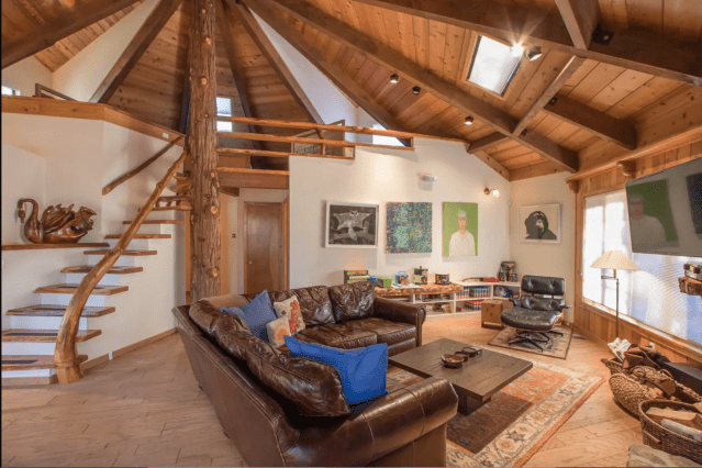 Rekindle the joy of being a kid as you revel in luxury suitable for grownups. This treehouse is nestled among maple, spruce, cedar, pine, and birch. Spacious at 900 square feet, this treehouse offers comforts like a whirlpool, sauna, kitchen, fireplace, seasonal outdoor shower, and plenty of deck space. Pets are welcome.